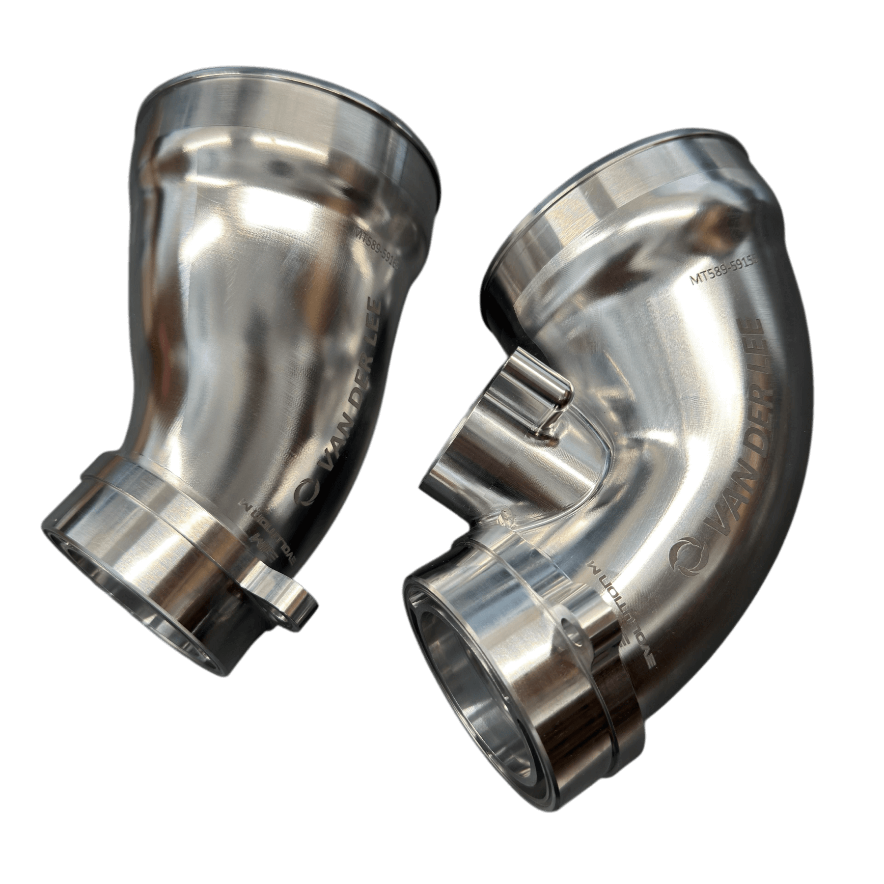 Exclusive Evolution M x VdLee turbo inlet pipes, designed specifically for the Eventuri intake, ensure perfect fitment, minimal inlet loss, and maximum airflow.